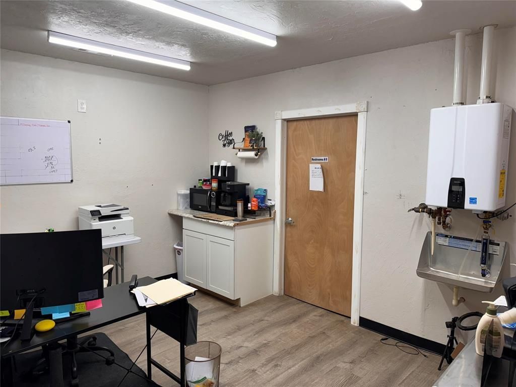 Fully insulated 2400 sq. ft. shop with 3 small offices and 1 bath. Fully fenced. Gravel drive/parking with 2 concrete parking spaces. on 1 acre in a great location. zoned commercial... Selling as is. Was a plumbing company. Has two bays with garage doors. Could be a variety of kind of businesses.