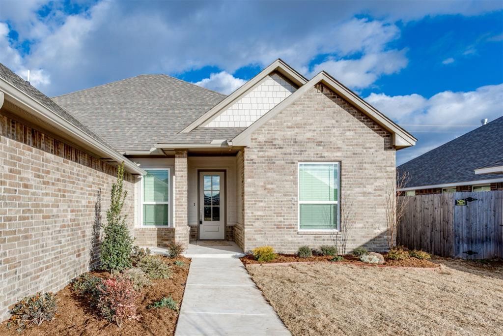 BUILDER'S SPECIAL -$10,000 in buyer incentives + $3,000 in lender's contributions with preferred lender, which may be applied toward closing costs, interest rate buy-down, or select home additions such as fencing, full gutters, or a storm shelter! Don't miss this opportunity to stretch your buying power! The FINAL new construction in desirable Chapel Creek! This thoughtfully designed 3-bedroom, 2.1-bath home with a dedicated study offers modern style and everyday functionality in one of the area's most sought-after communities. Wood-look ceramic tile flooring welcomes you at the entry and extends throughout the main living areas, complemented by neutral tones and stylish brushed nickel fixtures. The open-concept living space is filled with natural light from large windows and anchored by a cozy gray slate gas log fireplace. The kitchen is both stylish and functional, featuring quartz countertops, stainless steel built-in appliances, and a large island ideal for gatherings and entertaining. The private primary suite is a true retreat, offering a soaking tub, oversized walk-in shower, and an expansive walk-in closet with custom built-ins and convenient access to the laundry room. Additional highlights include a built-in bench with coat rack at the garage entry, a covered backyard patio perfect for outdoor living, and a sprinkler system. Smart home features with a security system add modern convenience, while builder upgrades such as Hardie board siding, Energy Star efficiency, and a post-tension foundation provide lasting quality and peace of mind. Chapel Creek offers a prime location close to shopping, dining, and award-winning Piedmont Schools, along with a neighborhood pool and park. This home delivers the perfect blend of comfort, durability, and modern living.