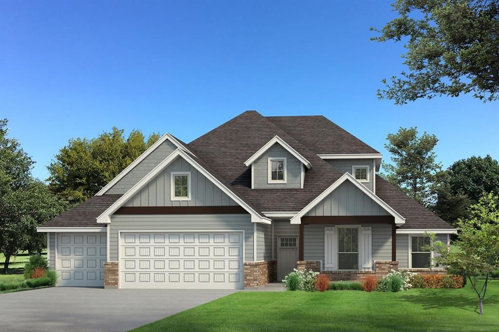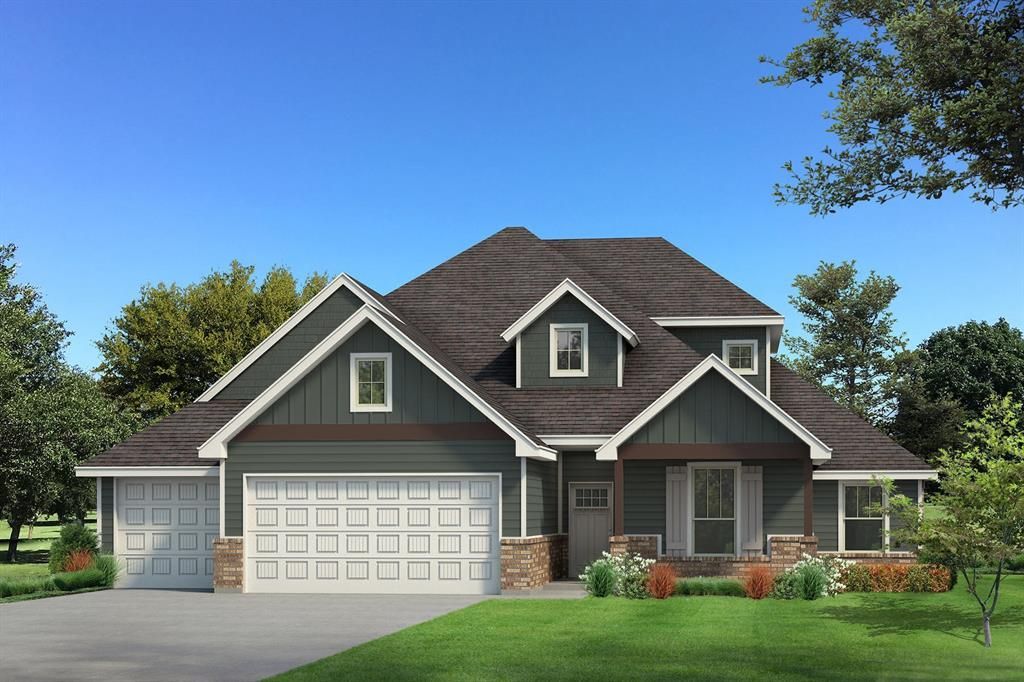 This Hazel Bonus Room 5 Bedroom Half Bath includes 2,840 Sq Ft of total living space, which includes 2,600 Sq Ft of indoor living space and 240 Sq Ft of outdoor living space. There is also a 600 Sq Ft, three car garage with carriage doors and an in-ground storm shelter installed. This extraordinary two-story home offers 5 bedrooms, 3 full bathrooms, a powder room, 2 covered patios, a spacious bonus room, a mudroom, and a utility room. The living room presents a stacked stone corner gas fireplace, wood-look tile flooring, a luxurious 3-panel sliding door with a 4' back patio extension, a coffered ceiling with a ceiling fan, Cat6 wiring, and rocker switches throughout. The brand-new kitchen boasts custom-built cabinets to the ceiling with under cabinet lighting and cabinet hardware installed throughout, 3 CM countertops, exclusive pendant lighting, a large corner pantry, stainless steel appliances, a 5-burner cooktop, double ovens, and an oversized center island equipped with a large sink, a dishwasher, and a trash can pullout. The primary suite welcomes a sloped ceiling detail, a ceiling fan, carpeted flooring, and Cat6 wiring. The attached bath boasts a dual sink vanity with framed mirrors, 3 CM countertops, wood-look tile flooring, a European walk-in shower featuring dual shower heads, a private water closet, a free-standing tub, and a massive closet featuring both horizontal and vertical storage. The enhanced outdoor living area provides a wood-burning fireplace, a gas line, and a TV hookup. This new build also features our healthy home technology, a tankless water heater, a whole home air filtration system, R-44 insulation, and more!