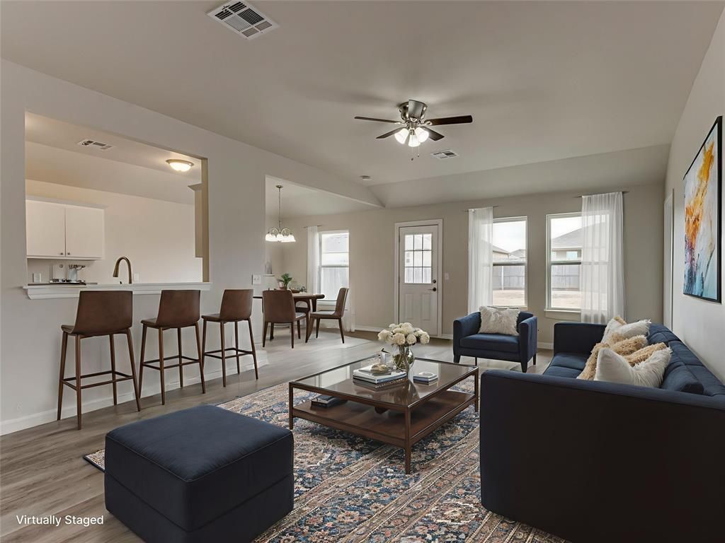 Cutie in Yukon Schools! Spacious open concept 3 bed, 2 bath with no carpet! Move in ready! Full pantry and gas range in kitchen. Primary bedroom is large with quartz countertops and spacious closet. Fully fenced large backyard. HVAC and hot water tank new in 2025.