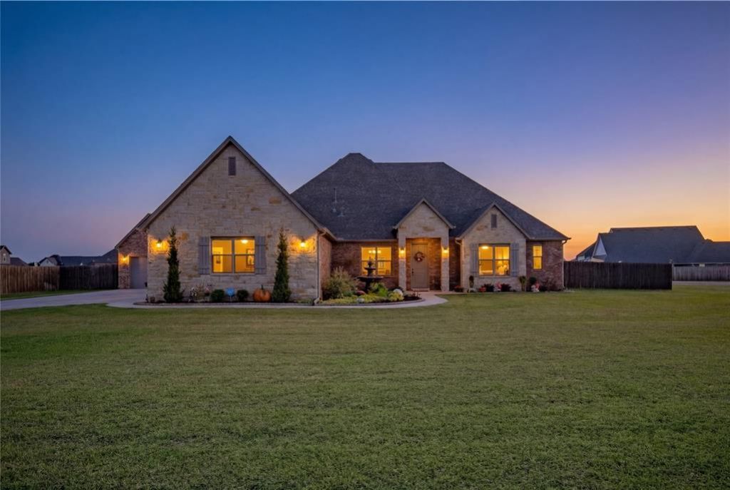 Seller is offering $8,000 towards buyers closing costs with acceptable offer. This beautiful home in the gated Pulchella Addition sits on a .67 acre corner lot and offers modern design and high end finishes throughout. The open layout features wood tile floors, white cabinetry, quartz countertops, and a large island with seating. The private master suite includes a marble-tiled shower, dual sinks, soaking tub, and spacious closet.Enjoy incredible upgrades including a 15'x24' temperature controlled shop, beautifully crafted outdoor kitchen and pergola overlooking a large fenced yard, perfect for entertaining or relaxing, above ground storm shelter, whole house and shop gutters, large water fountain to elevate landscaping, granite composite kitchen sink, upgraded lighting and oven, stained stockade fencing plus many added custom touches inside and out. This home is a must see!