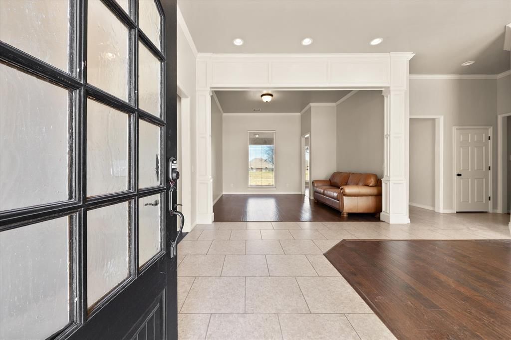 Stunning stately home perfectly positioned on the 13th hole with beautiful lake views. From the moment you enter, you're welcomed by soaring vaulted ceilings, intricate crown molding, and timeless elegance. A formal dining room sits just off the foyer, ideal for hosting. This well-designed layout features a dedicated office and a private east wing with oversized bedrooms and ample closet space. The open-concept kitchen is built for both everyday living and entertaining, showcasing Bianco Antico granite countertops, custom patina cabinetry, stainless steel professional-grade appliances, and a large island for gathering. The spacious living room is filled with natural light and anchored by a striking fireplace with an opulent hearth and Venetian Gold granite surround. The primary suite offers a true retreat with tray ceilings and a spa-like en-suite featuring dual vanities, a jacuzzi tub, separate shower, and a walk-in closet with custom built-ins. Step outside and enjoy peaceful golf course and lake views right from your backyard. Located in the highly desirable Surrey Hills community, this home offers both luxury and lifestyle. Don't miss your opportunity to live on the course-schedule your showing today!