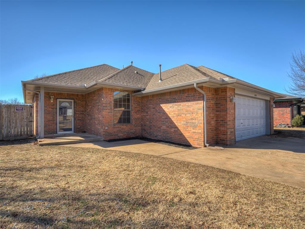 MOVE IN READY!! Welcome home to this inviting 4-bedroom (or 3-bedroom with an office), 2-bath corner-lot property in Yukon, zoned for the highly sought-after Mustang School District. Located just minutes from I-40, shopping, dining, and grocery stores, this home offers both comfort and convenience. Inside, you'll find fresh paint through, new carpet and padding, and a charming brick-Gas log fireplace that anchors the living space. The split floor plan provides a private primary bedroom on one side of the home, with three additional bedrooms on the other-ideal for families or guests. Other recent updates include a dishwasher purchased in 2023 and a new microwave purchased 2026.