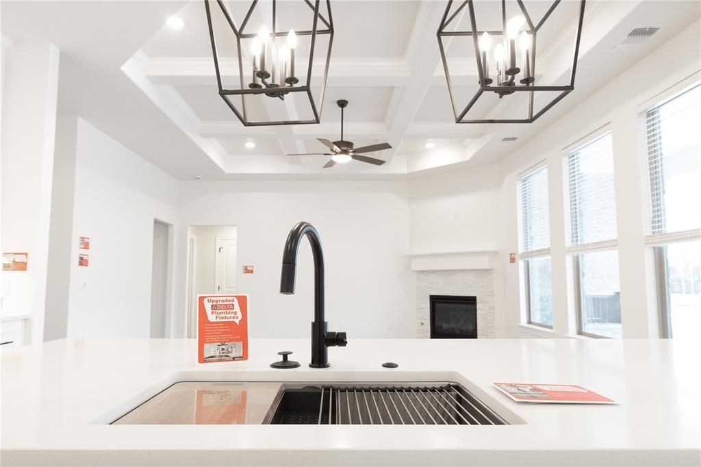 FENCING AND BLINDS INCLUDED! The Hazel floor plan has a total of 2,095 Sqft for living space, including 1,900 Sqft of indoor living and 220 Sqft of outdoor living that features a wood-burning fireplace, a gas line, and a TV hookup! This immaculate home offers 4 bedrooms, 2 full bathrooms, covered patios, a utility room, and a 3-car garage with an in-ground storm shelter installed. The great room presents a beautiful coffered ceiling with a ceiling fan, a gorgeous corner gas fireplace with our stacked stone detail, large 7' windows, rocker switches throughout, and elegant wood-look tile. The high-end kitchen has stainless-steel appliances, including a 5-burner cooktop, decorative tile backsplash, custom-built cabinets to the ceiling with under cabinet lighting and cabinet hardware installed throughout, a large corner pantry, 3 CM countertops, more wood look tile, stunning pendant lighting, and an oversized center island that holds a farm sink, a dishwasher, and a trash can pullout. The primary suite spotlights a sloped ceiling detail with a ceiling fan, windows, and our cozy carpet finish. The spa-like prime bath has a free-standing tub, a dual sink vanity with framed mirrors, 3 CM countertops, a European walk-in shower, a private water closet, and a huge walk-in closet with horizontal and vertical storage opportunities. Secondary bedrooms feature high ceilings with ceiling fans, sizeable closets, windows, and carpeted flooring. Other amenities for this energy efficient home include a tankless water heater, a fresh air ventilation system, R-44 and R-15 insulation, and so much MORE!