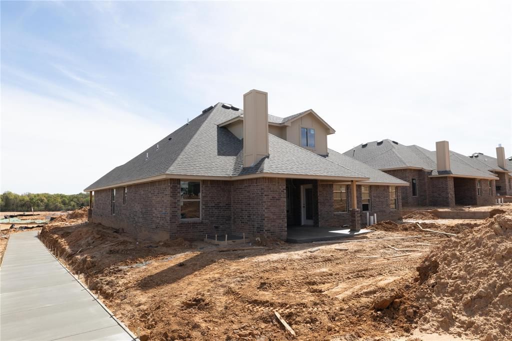 CORNER LOT! This Blue Spruce Bonus Room 2 floor plan includes 2,640 Sqft of total living space, which features 2,350 Sqft of indoor living and 290 Sqft of outdoor living space. There is also an extended three car garage with a dedicated freezer outlet and an in-ground storm shelter installed. Both double bay and single bay garages feature a 4' extension. This home offers 4 bedrooms, 3 full baths, 2 covered patios, a large bonus room, and a utility room. The great room welcomes an outstanding coffered ceiling with a ceiling fan, excellent wood-look tile, rocker switches throughout, a gas fireplace featuring a stacked stone detail, Cat6 wiring, and large windows. The kitchen supports stainless steel appliances, a 5-burner cooktop, 3 CM countertops, a center island with a trash can pullout installed, well-crafted cabinets to the ceiling with under cabinet lighting and cabinet hardware installed throughout, exceptional pendant lighting, and a separate walk-in pantry. The primary suite features a sloped ceiling with a ceiling fan, windows, and our cozy carpet finish. The attached primary bath hosts separate vanities with framed mirrors, a quad outlet near the makeup vanity area, a European walk-in shower, a free-standing tub, a private water closet, and a HUGE walk-in closet. Outdoor living has a wood-burning fireplace, a gas line, and a TV hookup. Other amenities include our healthy home technology, a tankless water heater, a whole home air filtration system, R-44 insulation, and so much more!