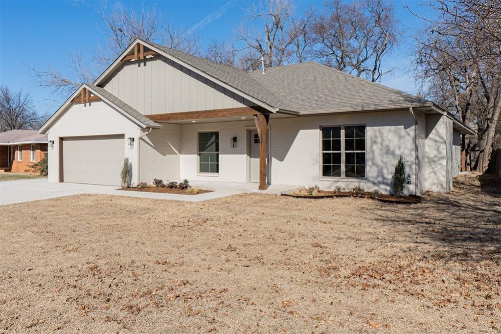 Built new in 2024, this executive home is for rent on a quiet street in Norman. This is a 4 bed, 2 full bath, 2 car property available in February. Close to OU, campus corner, Main Street, the mall, restaurants, and grocery stores. This home has a great back patio with a sliding kitchen window perfect for entertaining, overlooking the large backyard. The open floor plan has a fireplace in the living area, a full-size wine/coffee bar with a mini fridge across from the dining room, a large kitchen with wonderful storage, and a kitchen island that seats four. Wood flooring throughout the main areas. Large primary bedroom with a large walk-in closet and a primary bath with separate vanities and a spa-like shower. The three remaining bedrooms are of good size and are just across from the spacious hall bath. The large utility has a built-in mud bench and opens to the two-car garage. There is also extra parking in the extended, oversized driveway.* This is a No Pets and No Smoking/Vaping of any kind property*open to short-term lease until September, after that it will be only available with a minimum of a yearly lease.