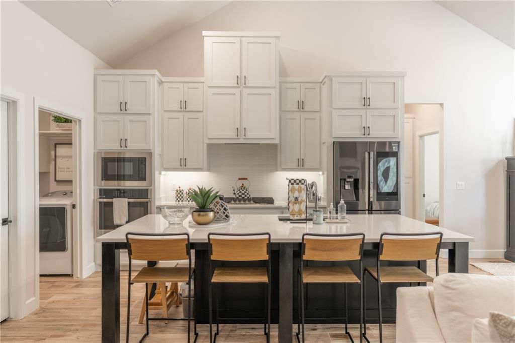 Welcome to this Westpoint modern build with luxury and ultimate convenience in this practically new, 3-year-old home. This stunning 4-bedroom, 2.5-bathroom masterpiece greets you with an 8-foot frosted glass front door equipped with secure keypad entry. Step inside to a breathtaking living space featuring 15-foot ceilings, sleek tile flooring, and a dedicated Butler's pantry-the perfect coffee bar and storage hub.The chef's kitchen and bathrooms boast quartz countertops and custom cabinetry which extends throughout the entire home. Kitchen has an oversized island and plenty of storage and Samsung touch screen fridge included. Retreat to the primary suite featuring a spa-like frameless shower, a standalone soaker tub, and a massive walk-in closet that is a true showstopper. All oversized bedrooms feature plush carpeting and ceiling fans for year-round comfort. Designed for the modern hobbyist, the 3-car garage includes custom cabinets, keypad entry, and a Tesla charger. Energy efficiency is a priority with a tankless water heater. Convenient laundry room with washer and dryer included. Outside, enjoy a private fenced yard with a covered patio, or take advantage of the community clubhouse, pool, and fitness center. Ideally located near Knight Ridge Elementary, the area's newest school!