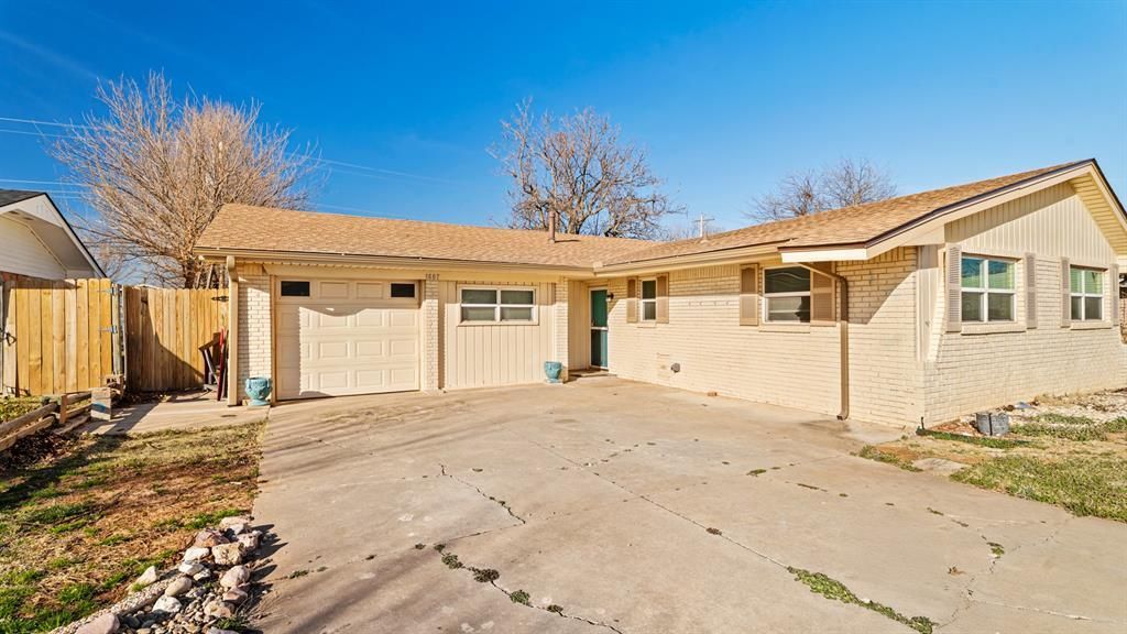 Perfectly priced for first time home buyers or investors! This well-maintained home is move in ready! This brick home has 2 bedrooms and 2 bathrooms with a split use garage. One side of the attached garage still has a single bay parking area while the other side of the garage has been converted into additional living space. This dual purpose space easily converts to fit the homeowners immediate needs. Inside this house features low maintenance hard surface flooring throughout and upgraded granite counter-tops in the kitchen. Outside homeowners will enjoy a fenced backyard and tornado shelter for added peace of mind. This walkable neighborhood is just steps away from Southern Hills Elementary School and minutes away from shopping and restaurants. Buyer to verify school district. Don't miss out on this opportunity! Book your appointment today!