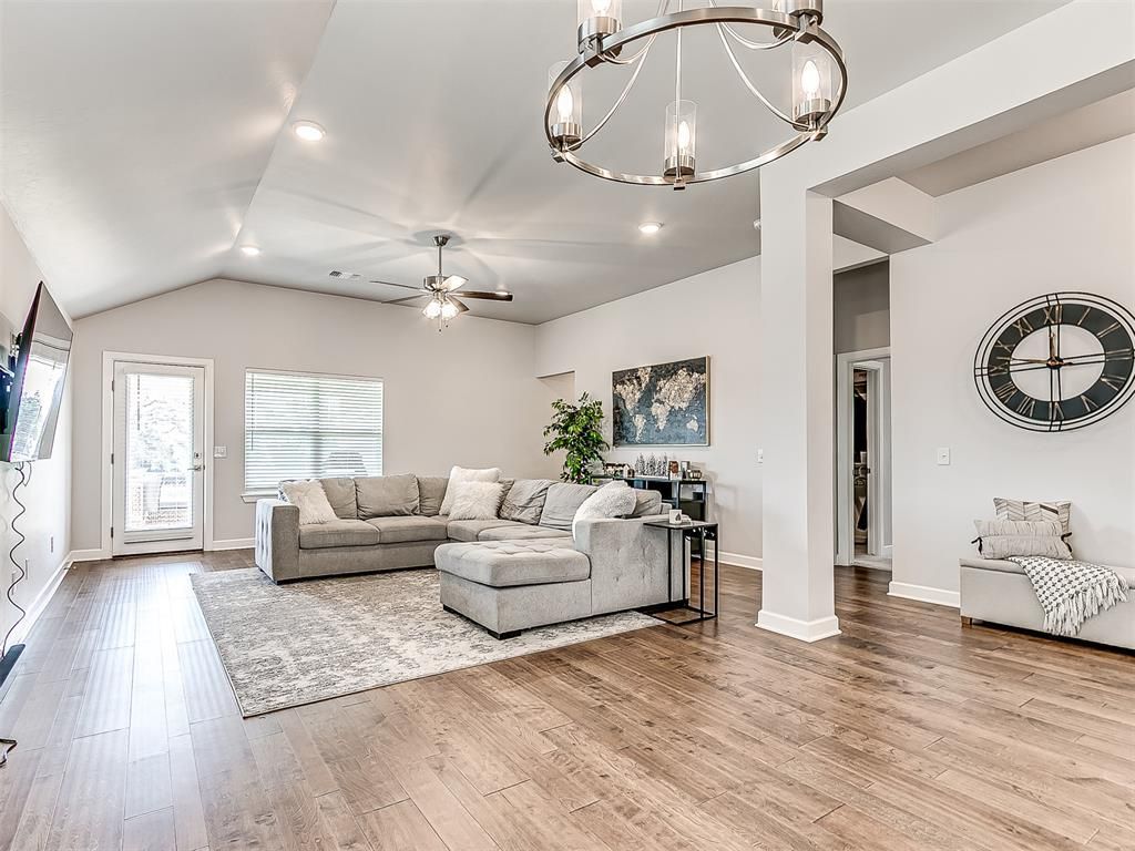 Better than new and set on a premium lot backing to greenspace and a peaceful neighborhood pond, this home offers a rare combination of privacy and beautiful views.Inside, you'll find a bright, open layout with tall ceilings and abundant natural light that creates a warm, welcoming feel throughout. The kitchen is thoughtfully positioned and features quartz countertops, a gas range, and beautifully selected finishes-both functional and visually appealing for everyday living and entertaining.The layout is well designed, with a comfortable primary suite offering a spacious walk-in closet, while two secondary bedrooms are privately located at the back of the home along with a full bath-ideal for guests or family. Just off the garage entry, a convenient drop zone helps keep daily essentials organized and out of sight.Additional highlights include wood flooring in the main living areas and an epoxy-coated garage floor for durability. Out back, enjoy the quiet setting with no rear neighbors-just open greenspace and calming pond views.Located in the Deer Creek School District, Knox Farm offers sidewalks, a playground, and convenient access throughout the OKC metro.