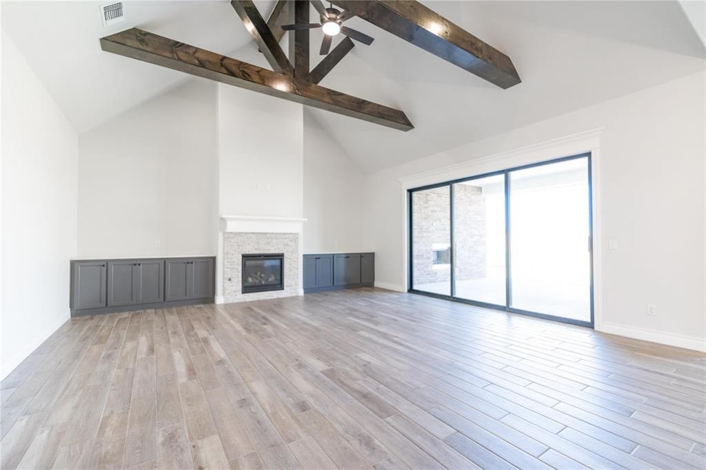 This Wesley Bonus Room floor plan includes 3,630 Sqft of total living space, which features 3,285 Sqft of indoor living space and 345 Sqft of outdoor living space. There is also a 590 Sqft, three-car garage with an in-ground storm shelter installed! This desirable home offers 5 bedrooms, 3 full bathrooms, covered patios, a large bonus room, a powder room, and a utility room featuring a utility sink. The great room supports an immaculate cathedral ceiling with a crows feet detail and a ceiling fan, a luxurious 3-panel sliding door with a 4' back patio extension, wood-look tile, rocker switches throughout, Cat6 wiring, eggshell paint, and a gas fireplace featuring a stacked stone detail and built-in lower cabinets on both sides. The upscale kitchen boasts stunning pendant lighting, stainless steel appliances including double ovens and a 5-burner cooktop, 3 CM countertops, vogue tile backsplash, well-crafted cabinets to the ceiling with cabinet hardware throughout and under cabinet lighting, decorative end panels, a separate walk-in pantry, and a large center island that holds a roomy sink, a dishwasher, and a trash can pullout. The primary suite provides a sloped ceiling detail, a ceiling fan, a plush carpet finish, and windows. Attached is the main bath, which has a bat-winged vanity with framed mirrors, 3 CM countertops, a large European walk-in shower, a private water closet with an elongated toilet, a free-standing tub, and a HUGE walk-in closet! The covered outdoor living area welcomes a wood-burning fireplace, a gas line for your grill, and a handy TV hookup. Other included features for this elegant home include our healthy home technology, an air filtration system, a tankless water heater, double glazed vinyl low E windows with argon, R-44 and R-15 insulation, a fresh air ventilation system, and so much more!