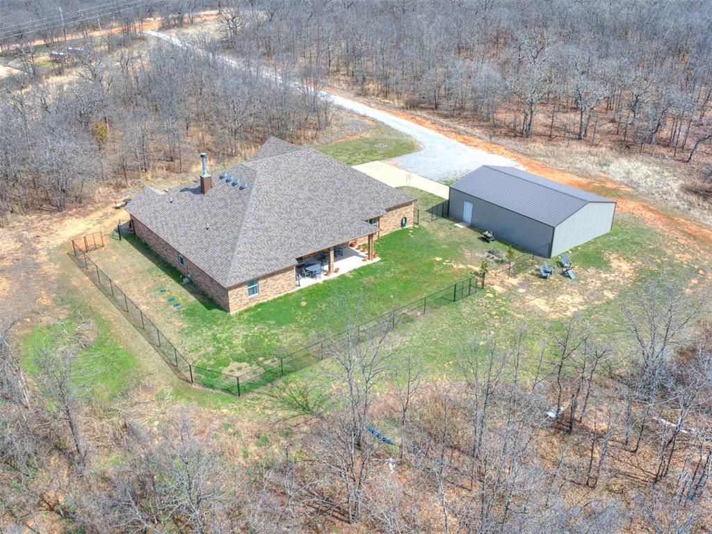Take a look at this stunning, better-than-new home set on just under 8 acres (MOL), offering the perfect mix of modern comfort and peaceful country living. With 5 bedrooms, 3 bathrooms, and a 3-car garage, this spacious home features an open-concept layout designed for both everyday living and entertaining. The thoughtfully designed split floorplan provides privacy for everyone, with two bedrooms in one wing, two additional bedrooms in another, and the primary suite tucked away on its own. Unique custom touches throughout-like accent wallpaper on ceilings and upgraded light fixtures-add character and style you won't find in a typical build. In addition to the bedrooms, there's a versatile bonus/flex room that can easily serve as a home office, media room, homeschool space, or hobby area to fit your needs. The kitchen and living spaces shine with custom cabinetry, granite countertops, and stainless steel appliances, blending functionality with a polished look. Quality craftsmanship and attention to detail are evident throughout the home. Step outside and you'll find a 30x40 shop ready for projects, storage, or workspace needs, complete with a concrete slab, walk-through door, overhead door, and moisture barrier insulation. A portion of the property is enclosed with black chain-link fencing, making it a great setup for pets. As an added bonus, the road is scheduled to be paved soon, making this already desirable, No HOA location even more appealing.