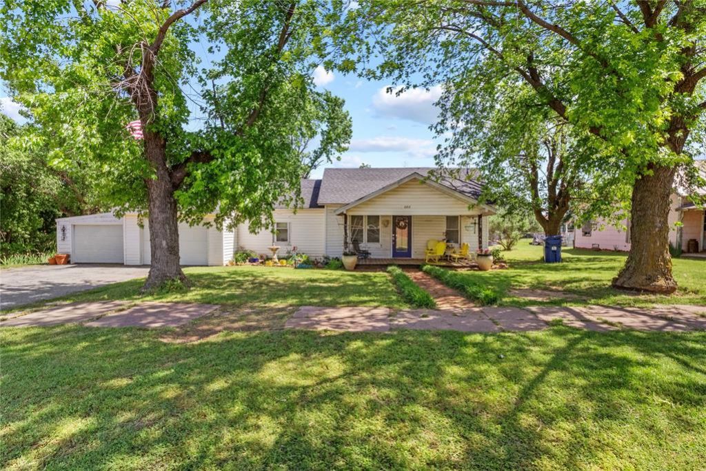 Prepare to embrace peaceful living in this quaint and cozy bungalow home. Located in the tranquil town of Custer City, OK, this home features a spacious yard backing into a creek. Enjoy shade from the mature trees surrounding the property and the covered porch. Upon entry you'll be greeted by combination of modern and authentic touches such as sleek fixtures and original hardwood floor. In the kitchen is functionally sleek system of stainless steel appliances, ample cabinetry, & smooth cabinets. Each of the two bedrooms offer adequate space for your needs. The primary bathroom boasts an elegant freestanding tub, modern vanity + backsplash, and charming tile flooring. The secondary bathroom offers a shower, traditional vanity, and open cabinet for convenience. Attached to the home is a two car garages, each with their own door. Other outdoor features include a shop for extra storage and a storm shelter for peace of mind. This serene rural oasis is ready for you to move in! Schedule your showing today.