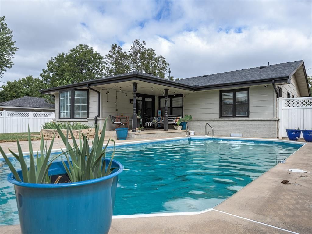 Step inside and you'll find tons of natural light and gleaming, restored original wood floors. This home in The Village is a perfect blend of classic charm and modern updates. The kitchen is a chef's dream with stainless steel appliances, a gas stove, and stunning granite countertops. Cozy up by the fireplace with its sleek black stone mantle, or curl up with a book in the sun-drenched alcove window nook. Each bedroom comes with a ceiling fan and plenty of closet space, while the guest bath is a showstopper with a vessel sink and chic stone tile shower. Outside, the yard is a gardener's paradise with raised garden beds ready for your green thumb and a trellis fence for added privacy. Hot Water Tank replaced in 2024. And get this: you have your own in-ground pool for those hot summer days! This home is ready for you to make a splash.