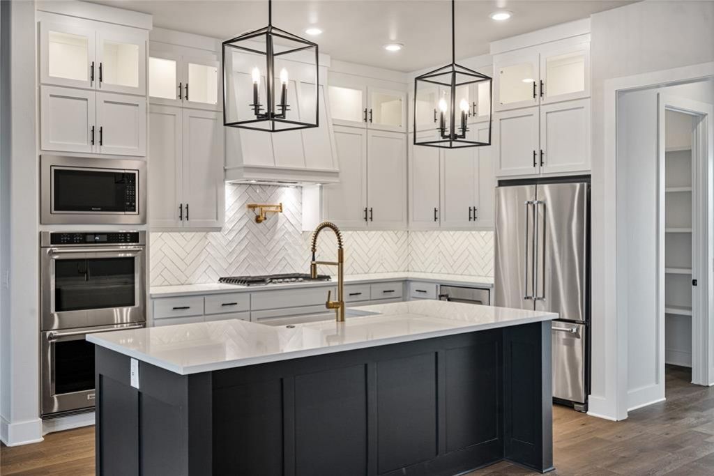 Experience refined elegance and modern comfort in this beautifully designed 4-bedroom, 3.5-bathroom home perfectly situated in a private, gated golf course community. From the moment you step inside, you'll be captivated by the open-concept layout, soaring ceilings, and impeccable attention to detail throughout. The gourmet kitchen is a dream come true for the home chef-featuring a massive center island, quartz countertops, custom cabinetry to the ceiling, herringbone backsplash, and stainless-steel built-in appliances including a double oven, gas cooktop, and wine fridge. The spacious living room makes a statement with its vaulted ceilings, sleek modern fireplace, and large picture windows that flood the space with natural light. The primary suite is a true retreat with a tray ceiling accented by wood beams, while the spa-inspired ensuite bath offers dual vanities, a freestanding soaking tub, and a stunning glass-enclosed walk-in shower. Upstairs, a bonus room adds flexibility for a game room, media space, or private office. Step outside to your expansive covered patio-complete with a built-in grill and fireplace-ideal for entertaining or relaxing year-round. Every element of this home combines sophistication, comfort, and functionality-creating the perfect blend of style and livability. Luxury, craftsmanship, and golf course living await-schedule your private showing today!