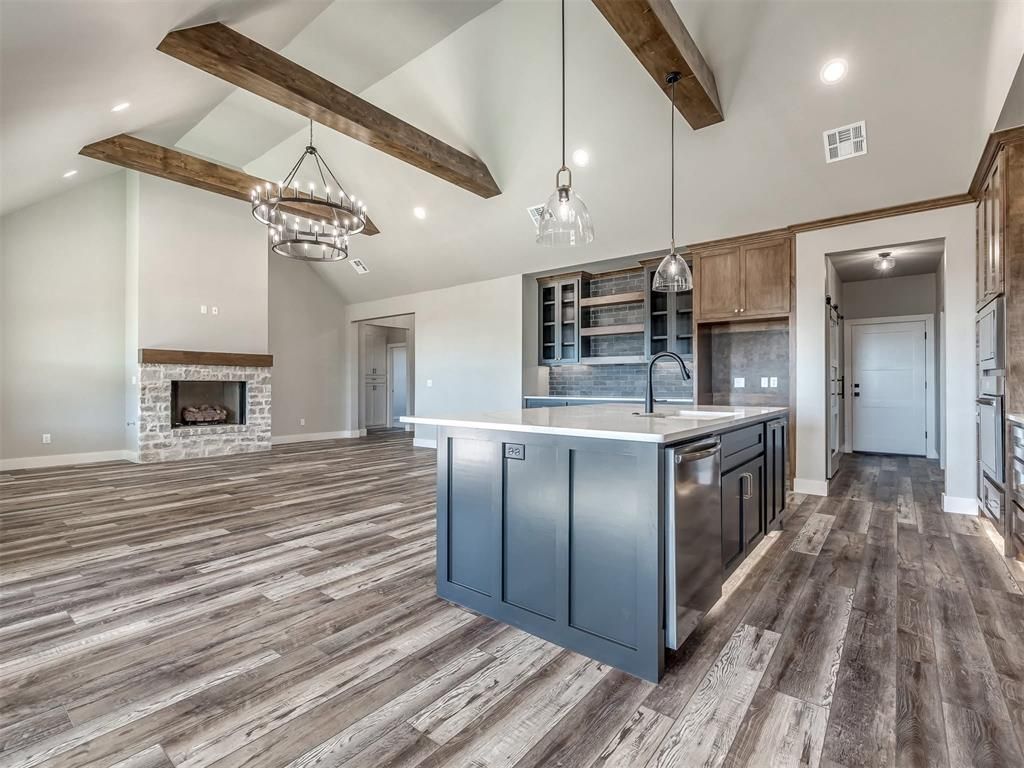 Welcome to 2224 W Sunset Dr, Mustang - an exceptional home in the highly desirable Spitler Lake Estates. This 2,331 sq ft residence blends modern efficiency with upscale finishes and thoughtful design.Highlights:- 4 bedrooms, 2.5 baths- Cathedral ceilings up to 14'- Spacious open floor plan with oversized island and quartz countertops- Custom maple cabinetry throughout and pantry with cabinets & countertops- Frigidaire stainless appliances- Gas stone fireplace - elegant focal point- Full tile showers to ceilings; walk-in master shower- Tankless hot water heater- 96% efficiency HVAC unit- Solid-core interior doors and full home insulation (including garage)- Oversized garage height and doors- Whole-home gutter package- Entire lot irrigated and soddedThis home offers high-end touches, energy-efficient systems, and low-maintenance landscaping in a sought-after neighborhood. Perfect for buyers seeking quality craftsmanship and comfortable, modern living.