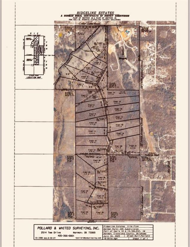 Welcome to Ridgeline Estates! Norman's newest private upscale development in East Norman at just 1.5 miles east of 120th on Cedar Lane Rd. Each of these 28 lots ranging in size from 10 to 20 acres have incredible character with gently rolling hills and enormous oak and pecan trees. This lot has 14.85 acres and is mostly cleared pastureland that was previously used for hay production. Evenings watching sunsets and the abundant local wildlife will make lasting memories at each of these wonderful homesites. This private development won't have streets completed until December, but we are making lots available now. OEC will bring electric up all the streets at no charge and provide High Speed Fiber internet. Come take a tour and pick out your future homesite. Horses allowed. Lot prices ranging from $12,500 to $20,000 an acre.