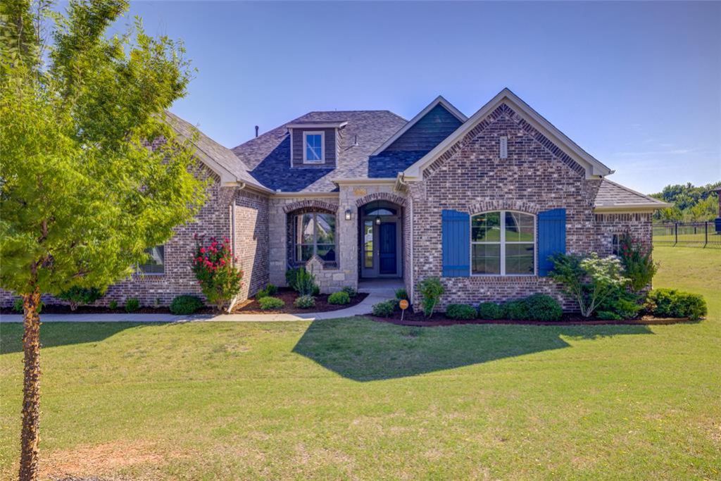 SELLER OFFERING TO PAY $5000 OF BUYERS CLOSING COST. JUST OVER 3/4 of an acre with lots of room to Romp and Play. This sprawling 5 bedroom home has it all. Large bedrooms for the kids, Beautiful study with French doors for Mom or Dad and all the bedrooms are on the main floor. Large playroom with a bathroom can act as a bedroom also if needed. Upstairs perfect for a Theatre Room, playroom, or great hobby room. Split bedroom plan, so the Primary bedroom is tucked away from the kids. Great windows bring in natural light. 5 bedrooms and 4 baths, along with 2 living and a study. Large open kitchen with a huge island and breakfast bar makes way for family gatherings, football games and kids activities and homework. Lots of crown molding, quartz and nice built-ins. Kitchen has stainless steel appliances, oodles of storage, double ovens, a huge walk-in pantry, and roll outs in the cabinets. Utility room with a sink also makes a great mudroom with storage for all the kids. Nice fireplace with gas logs for those cool fall and winter days. Primary bathroom has a large tub and separate shower with 2 heads, a make-up station and double vanity. Huge walk-in closet so Dad even has room for his clothes??. Side entry 3 car garage with storm shelter and large driveway perfect for a basketball game. Sprinkler system and Central Vacuum system. Home has a full cable network system. The land to the North is an open green space. Easy access to I-35, Tinker AFB, University of Oklahoma, and downtown Norman Arts District.