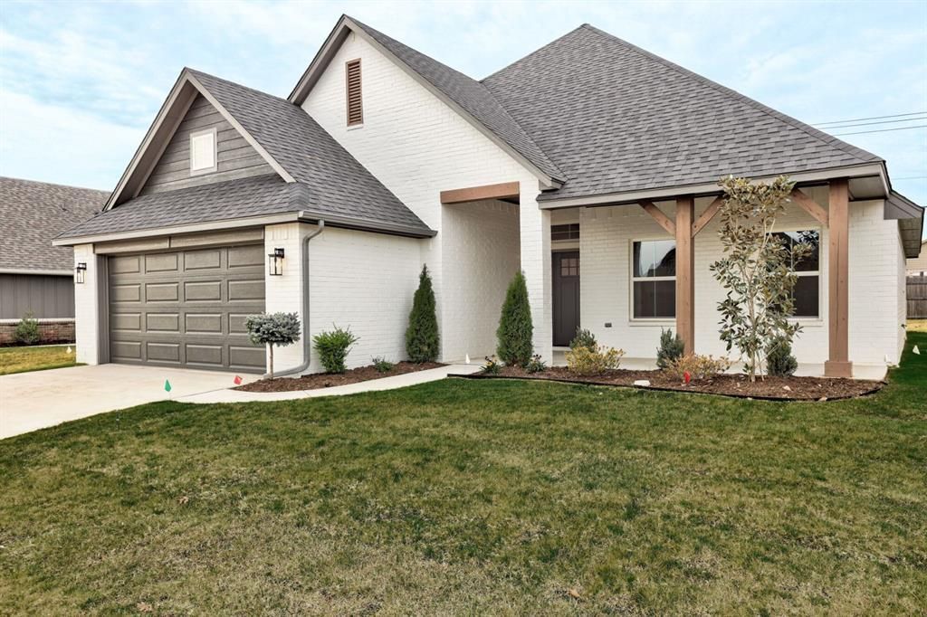 Move In Ready! Nestled in the charming community of Castlewood Trails, this beautifully designed home offers a flexible layout featuring a versatile front flex room - perfect for a home office, playroom, or creative space - and a spacious 2-car garage. The open-concept kitchen and living area boasts a gas fireplace, wood-look tile flooring, a large island with seating, and designer lighting. The primary suite includes a generous walk-in closet and a luxurious bath with a soaking tub and a walk-in shower with Schluter waterproofing. Two additional bedrooms share a full bath just off the living area. Step outside to a covered back porch, ideal for relaxing or entertaining. Built on a 0.15-acre lot, this home features cutting-edge innovations like 2x6 walls with spray foam insulation, high-performance windows, healthy air filtration, a tankless water heater, sprinkler system, and more - ensuring exceptional comfort, efficiency, and long-term savings. Located near Route 66 and the Kilpatrick Turnpike, Castlewood Trails offers a playground, splash pad, picnic area, and scenic walking paths. Stock photography used; features, finishes, and floor plan may vary. Contact a sales representative for more information.