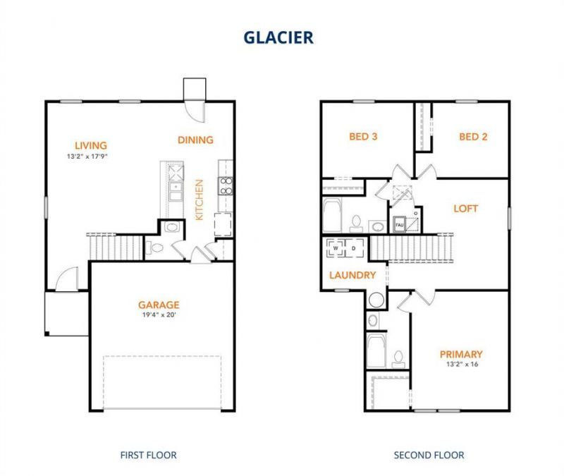 MLS# 1220796 - Built by NHC - Estimated Completion June 2026 ~ The Glacier Plan from our Freedom Series is a thoughtfully designed 2-story home offering 3 bedrooms, 2.5 bathrooms, and 1,600 square feet of living space, complete with a 2-car garage.As you step inside, you'll pass the staircase to the upper level before arriving at the bright and open family room. This inviting space flows seamlessly into the kitchen and dining area, creating the perfect setting for family time or entertainment. A convenient half bathroom is located just off the kitchen for easy access.The upper level is designed for relaxation and privacy, featuring a spacious primary suite with a walk-in closet and a private bathroom. Two secondary bedrooms, a full bathroom, and a laundry room complete this level. A large loft provides additional living space, ideal for a playroom, media area, or home office.