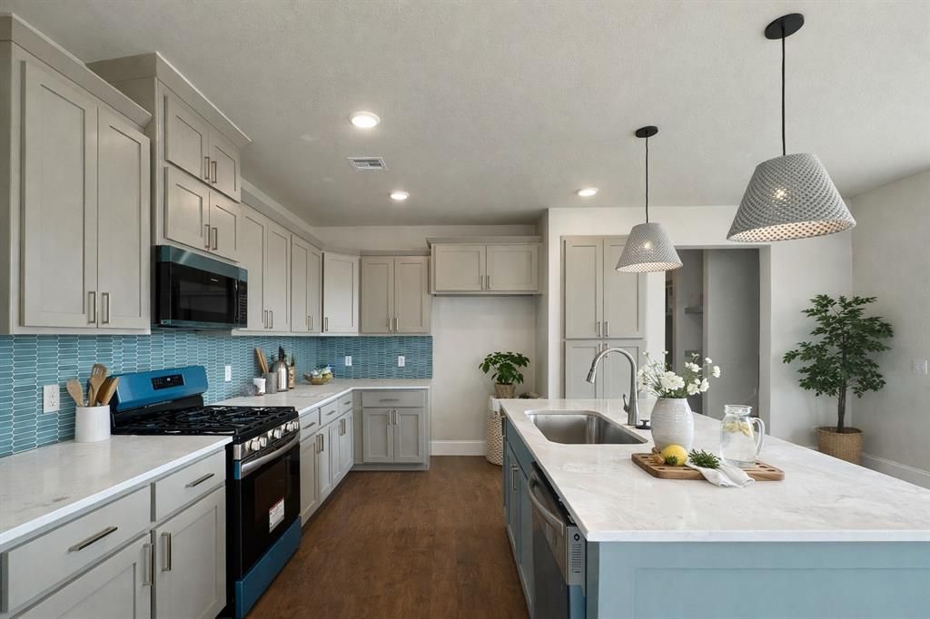 Buyer Incentive Alert! This home includes a fence and blinds PLUS $5,000 toward closing costs, upgrades, or interest rate buy-down when using the builder's preferred lender. Welcome to the Willow floor plan, a beautifully designed two-story home located in the sought-after Anthem community within the award-winning Deer Creek School District. This home offers 3 bedrooms and 2.5 bathrooms with a functional layout designed for modern living. The first floor features 9' ceilings and an open-concept design that includes the primary bedroom, laundry room, powder bath, and spacious living, dining, and kitchen areas, perfect for everyday living and entertaining. A large under-stair storage closet adds valuable functionality. The kitchen is the heart of the home, featuring quartz countertops, custom cabinetry, Frigidaire appliances, a gas range, and a center island ideal for gathering and meal prep. The main-level primary suite offers a private retreat with a single vanity featuring dual sinks, a walk-in shower tiled to the ceiling using the Schluter waterproofing system, and a spacious walk-in closet. Engineered hardwood flooring flows throughout the main living areas, adding warmth and durability, while elevated finishes and modern design details are found throughout. Built with durability and energy efficiency in mind, this home includes 2x6 exterior walls, a Post Tension foundation, James Hardie siding, Low-E Argon windows, Lennox high-efficiency HVAC, and a tankless hot water heater, all backed by a 2-10 Home Warranty. Enjoy outdoor living on the covered patio, perfect for relaxing or entertaining, along with a sprinkler system for easy lawn maintenance. Residents of Anthem will soon enjoy resort-style amenities including a pool, pickleball courts, playground, walking trails, and a scenic neighborhood pond, all conveniently located near shopping, dining, and major highways.