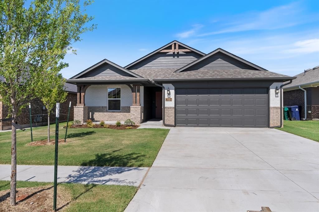 Beautifully designed new construction 3-bedroom, 2-bathroom home (approx. 1,158 sq ft) features a bright open-concept floor plan with tall ceilings that create a spacious, inviting feel. The main living areas showcase durable wood-look flooring, combining style with easy maintenance, while the bedrooms offer comfortable carpeting.The kitchen is thoughtfully designed with quartz countertops, a functional island, modern cabinetry, and a gas range, making it perfect for both daily living and entertaining.The primary suite provides a private retreat with a walk-in closet, and a beautifully finished tiled shower. Secondary bedrooms are well-sized and share a full bathroom with quality finishes.Step outside to enjoy a fully fenced backyard space. Additional highlights include a 2-car garage, energy-efficient construction, and a convenient single-story layout.Located in the desirable Yukon area, this home offers quick access to the Kilpatrick Turnpike, I-40, shopping, and dining.