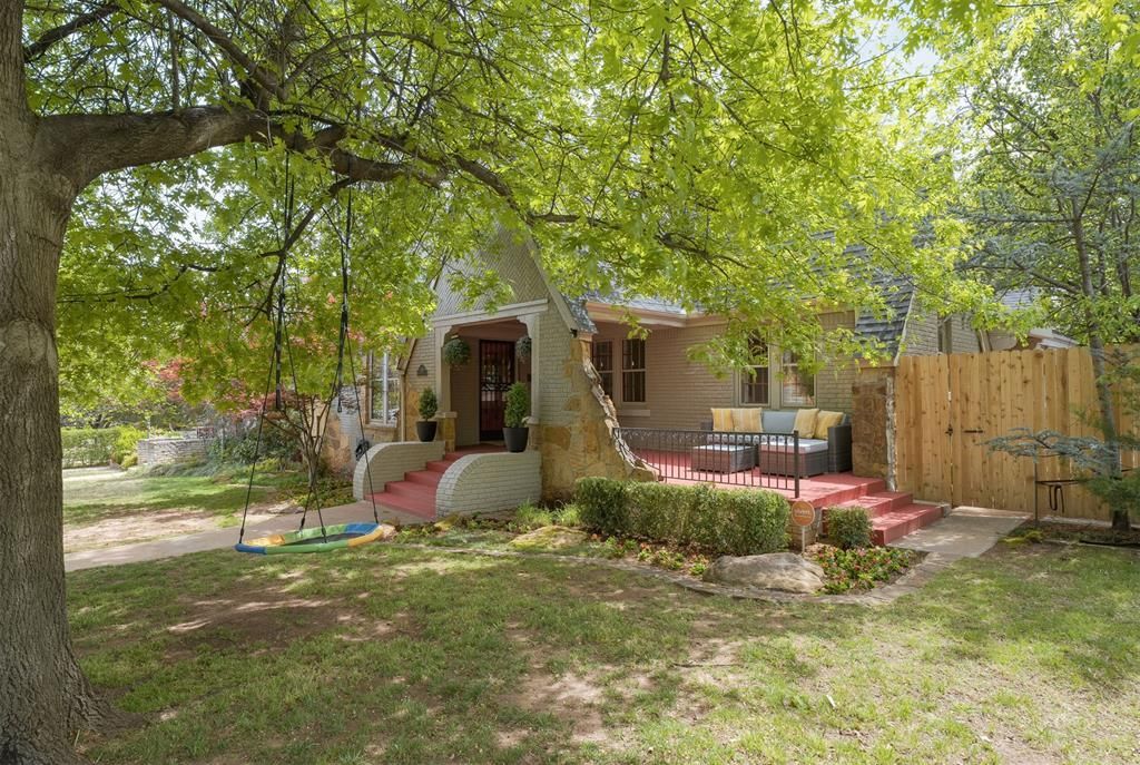 This 1932 Edgemere Park gem blends historical grandeur with meticulous modern updates. Every corner of this residence celebrates the era's craftsmanship, featuring period-specific angles, whimsical nooks and artful accents making the home feel both exceptionally fresh and warm. Begin with the sprawling, show-stopping front patios, a nostalgic, sun-drenched gathering place perfect for hosting neighbors or enjoying quiet evenings. This home is a designer's dream. The living room includes a tray ceiling and a fireplace with a sleek marble surround. Original quarter-sawn oak hardwood floors flow into a large dining room (optional second living space), all framed by stunning, artful windows. The kitchen features stacked stone accents, gas cooktop and premium stainless steel appliances (refrigerator, dishwasher, and microwave included). Enjoy morning coffee in the cozy breakfast nook, complete with beautifully restored original built-ins.Three generously sized bedrooms on the 1st floor. The primary suite offers a private, updated bath with a tub and shower. The two secondary bedrooms on main floor share a full hall bath. Both of these bathrooms are breathtaking works of art, meticulously preserved to honor their 1930s heritage. The upstairs features a large bedroom a half-bath, ample storage including a cedar closet and beautiful views of the downtown OKC skyline, a perfect space for a primary suite, creative studio or office. The finished basement exudes charm and versatility. An inviting space featuring a cozy stone fireplace and custom built-in cabinetry housing a Murphy bed, making it an ideal guest suite, media room or hidden getaway. Located in the heart of Edgemere Park, one of OKC's most beloved historic neighborhoods, with easy access to nearby parks and city amenities. Roof (2026), Foundation Repair (2025), New Fence (2025), Upstairs Windows (2026), Basement New Electric, Custom Cabinets, 6 Insulation, Waterproofing, French Drain/Sump Pump (2021)