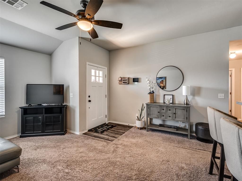 Welcome to this beautifully maintained 3-bedroom, 2-bath home located in the highly desirable Mustang School District! Offering a functional open-concept layout, this home combines comfort, style, and energy efficiency. Step inside to a spacious living area featuring vaulted ceilings, abundant natural light, and a seamless flow into the kitchen and dining space-perfect for both everyday living and entertaining. The kitchen is equipped with ample cabinetry, generous counter space, and a convenient breakfast bar for additional seating. The primary suite offers a relaxing retreat with a private en-suite bath and plenty of closet space, while two additional bedrooms provide flexibility for family, guests, or a home office. Enjoy peace of mind and long-term savings with SOLAR PANELS that stay with the home, making this property both eco-friendly and cost-efficient. Outside, you'll find a low-maintenance yard and a welcoming curb appeal, along with a 2-car garage for added convenience. Located just minutes from shopping, dining, and major highways, this home offers the perfect balance of comfort, efficiency, and location. Don't miss your opportunity to own a move-in ready home in Mustang-schedule your showing today!