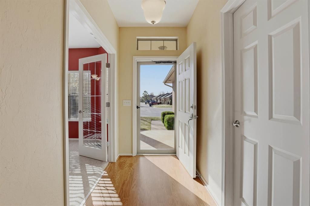 Discover the crown jewel of this exclusive gated community. Built by Brad Austin, this is the only custom designed home in the neighborhood. Meticulously maintained by the original owner who hand selected this premium lot for its privacy and position. The home radiates pride of ownership from every corner. Roof plus new gutters & HVAC replaced in 2023. Inside, you are greeted by an immaculate interior featuring soaring tray ceilings, rich crown molding, and sophisticated porcelain tile. The layout is enhanced by custom arched doorways and French doors leading into a formal dining room anchored by a beautiful bay window. The spacious living area features a cozy corner fireplace, is wired for surround sound which creates the perfect atmosphere for relaxation. The kitchen is a standout, featuring upgraded granite countertops and a tiled backsplash, a large walk in pantry and a dedicated custom writing desk/niche, an extra eat-in breakfast area for casual mornings & high end blinds throughout for perfect light control. The primary suite is a true retreat with a tray ceiling and a private door leading directly to the covered patio. The ensuite features a massive walk-in closet with ample storage. The second bedroom is equally impressive with a large walk-in closet and convenient direct access to the hall bathroom. Unique to this property is the extra-large garage, which the owner had custom enlarged during construction to accommodate luxury vehicles and additional storage. Outside, enjoy the peace and quiet of a covered patio with no neighbors behind you, providing a sense of seclusion within the city. Living in this gated community offers a low- maintenance, lock-and-leave lifestyle. The community swimming pool is just two doors away. Perfect for summer afternoons. Enjoy peace of mind knowing the HOA maintains the private roads and community integrity. Additionally, this home offers abundant storage, including an oversized laundry room and generous closet space.