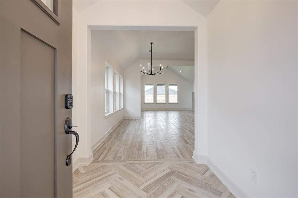 This new construction home in Danforth Crossing showcases beautiful curb appeal with its sleek modern exterior. The front entry opens into an airy dining room and kitchen with a large island, and walk in pantry. The living room features a gas fireplace, vaulted ceiling, abundant natural light, and overlooks a spacious covered back patio. The private primary suite includes a large shower with Schluter waterproofing and a massive walk-in closet. Three additional bedrooms are located on the opposite side of the home, sharing a full bath and linen closet. The laundry room includes extra storage, and a built-in mud bench sits near the garage entry. This home is includes a full sprinkler system, tankless water heater, healthy air filtration, smart system, and storm shelter. This home offers unmatched energy efficiency, comfort, and air quality for long-term savings. Innovations include a thermal enclosure with 2x6 walls and spray foam insulation, water/moisture barrier, ENERGY STAR appliances, and high-performance windows.