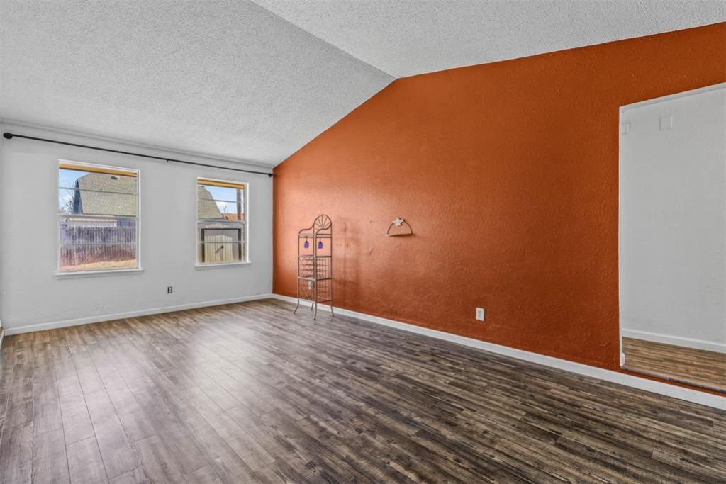 Welcome home to this beautifully updated 3-bedroom, 1.5-bath property offering style, comfort, and convenience. The exterior showcases a modern color palette and a spacious covered front porch - perfect for relaxing mornings or evening unwinding. Inside, the light-filled living room features tall, vaulted ceilings that create an open, airy feel, complemented by rich dark walnut laminate flooring that flows seamlessly throughout the home. The dining area is highlighted by a contemporary light fixture, adding a stylish touch for gatherings and everyday meals. The kitchen is designed to impress with modern painted cabinetry, granite countertops, a stainless-steel electric stove, and a dedicated coffee bar area - perfect for your morning routine. The generously sized primary bedroom includes an en-suite half bath and a walk-in closet for added comfort and convenience. Two additional bedrooms offer great space and flexibility. The full bathroom features a newer tub liner for peace of mind. Major updates include a recently replaced roof and newer HVAC system. The backyard offers additional storage with a newer metal outbuilding, providing extra functionality. Ideally located with easy access to major highways and Tinker Air Force Base, this home is perfect for first-time buyers or investors looking for a solid opportunity. Don't miss your chance to make this one yours!