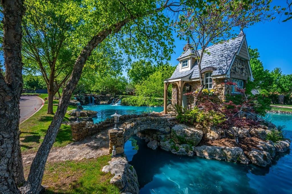 Tucked away on a quiet cul-de-sac in Edgewater gated community just one mile east of I35 near Lake Arcadia, this extraordinary custom estate, built with a southern European/French Country design offers luxury, privacy, and timeless craftsmanship on approx 2 beautiful wooded acres. Built in 2008 and spanning an impressive 9435 sqft, the home welcomes you with a majestic curved staircase, soaring spaces, and elegant finishes throughout. Designed for both grand entertaining and comfortable everyday living, the residence features 5 spacious bedrooms, multiple living areas, 5 fireplaces that add warmth and character throughout the home. The thoughtfully designed floorplan, includes a private theater room, expansive gathering spaces ideal for hosting family and friends. Step outside to your own resort-style retreat featuring a stunning pool and waterfall surrounded by majestic trees creating a peaceful and secluded outdoor oasis. A circle drive, generous parking, 5 car garage provide both convenience and impressive curb appeal. The Oklahoma City area is growing fast and gaining national attention with a thriving economy, low tax rates, Will Rogers International Airport, 2028 Olympic white water rafting events, a beautiful skyline, new Continental Coliseum where the world champion NBA OKC Thunder will play in 2028, parks, renown restaurants and entertainment. Perfect time to purchase a beautiful estate home in right here in Central Oklahoma!