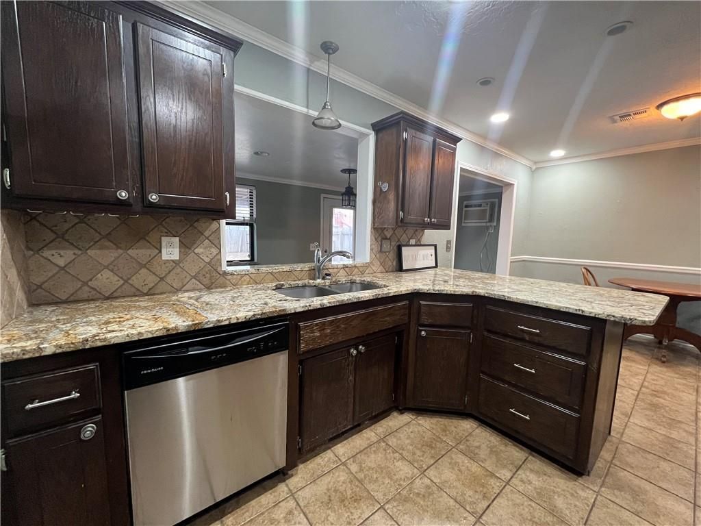 Available now. This 3-bedroom, 2-bath single-level home offers 1,469 square feet of comfortable living space with updated finishes throughout. Hardwood flooring, a wood-burning fireplace with built-in shelving, and granite kitchen countertops create a warm and functional layout. Stainless steel appliances are included.The primary bedroom features a walk-in closet, and the Florida room provides flexible bonus space ideal for work or additional living use. Covered patio and spacious backyard extend the living space outdoors.Storm shelter located in the garage floor. Interior laundry room and attached garage included.Yearly lease. Tenant responsible for utilities.