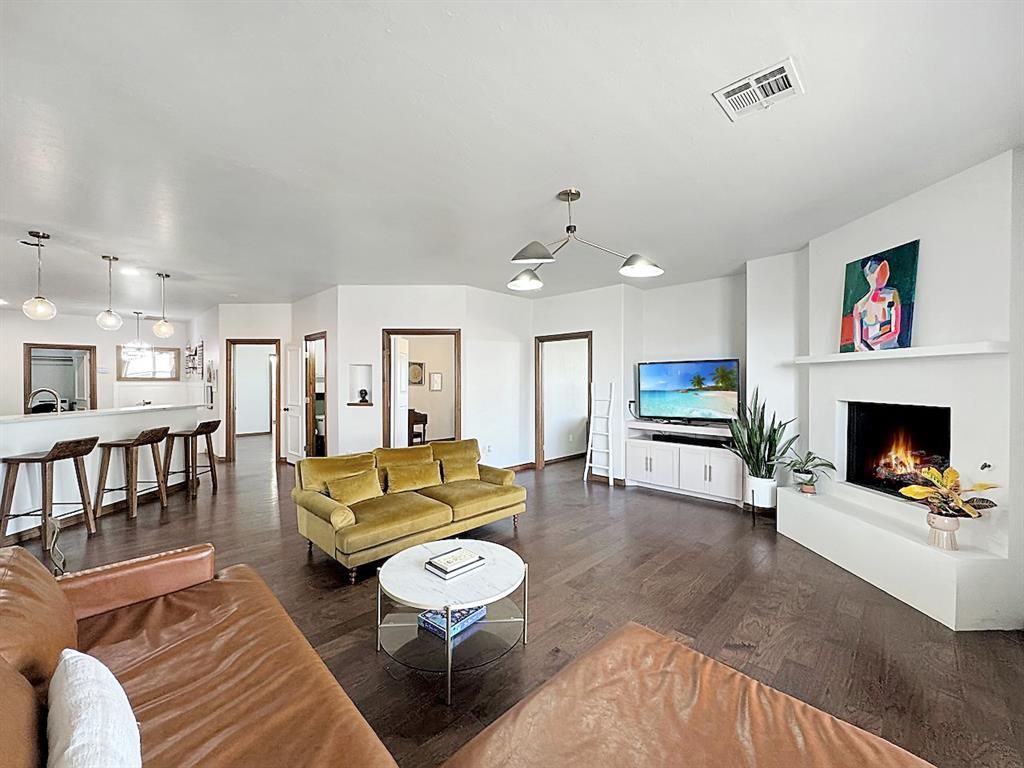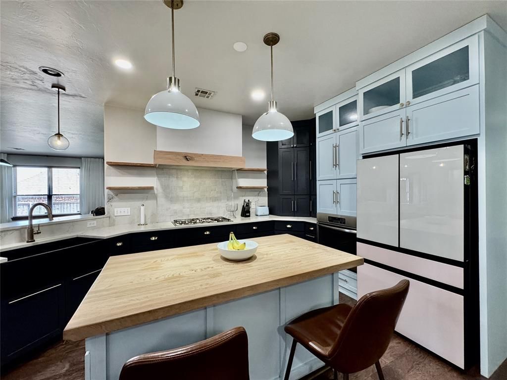 Check out this unique opportunity to own a rare updated home in the Sterling Canyon Addition. This home combines modern style with thoughtful updates on a spacious 1.01-acre (mol) lot. Step inside to find Shaw hardwood floors throughout and a stunning Venetian plaster fireplace as the centerpiece of the living space. The remodeled kitchen features a Venetian plaster hood with cedar trim, a soapstone farmhouse sink, waterfall quartz countertops, butcher block island, Moroccan zellige tile backsplash with quartz accents, and a built-in breakfast nook. A recently purchased black Cafe' dishwasher complements the freshly repainted cabinets with new hardware.The updates continue with brand-new quartz in the laundry room and primary bath, new wall tile over the vanity and tub surround, and all new faucets, door hardware, and modern light fixtures throughout the home. The layout offers three bedrooms plus a dedicated office (or optional fourth bedroom), two full baths, and a half bath. Enjoy the large entertainment room with extensive built-ins perfect for storage or play. There is also an office/workspace room in the garage that's tied into the HVAC system. That room also has a sink for easy cleanup after projects. Garage has an in-floor storm shelter.Outside, the front and back yards are fully sprinklered. New roof in 2025. A double-gated backyard and driveway pad make it ready for a future shop, RV, or boat parking. New stockade privacy fence has been completed in the front, back, and on the east side of the yard. A pond behind the back yard offers an opportunity for a water view with a fence alteration. With its blend of high-end finishes, functional upgrades, and a serene pond view, this home is move-in ready and designed for both style and everyday living.