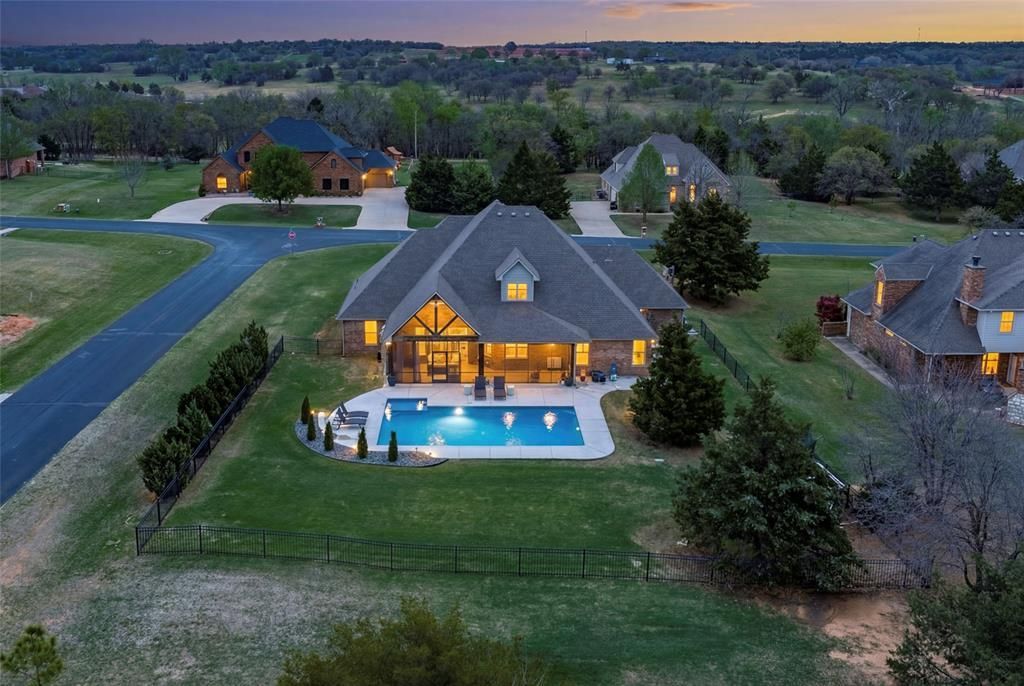 Welcome to 6471 Stone Hill Drive in the desirable Stone Valley Ranch addition of Edmond, where space, comfort, and thoughtful design come together on just over one acre. This beautifully maintained home offers approximately 3,001 square feet with a split floor plan featuring three bedrooms, three and 1/2 baths. The layout includes two spacious living areas, a dedicated study, and an oversized dining area, providing flexibility for both everyday living and entertaining. The kitchen is well-equipped with a built-in gas range and double ovens, ideal for those who enjoy cooking and hosting. The gas log fireplace adds warmth and charm to this stunning home. The study features custom built-ins. All bedrooms are conveniently located on the main level while the upstairs features an oversized bonus room and full bath. The private primary suite offers a relaxing retreat, while secondary bedrooms provide comfort and privacy for family or guests and share a Jack and Jill bath. Situated on a corner lot, the exterior features a wrought iron fence, covered patio, and covered porch, along with a private in-ground pool perfect for outdoor enjoyment. The pool is 38x18 with a heater and tanning deck and is salt generated chlorine. Additional highlights include a three-car attached garage, screened in porch with outdoor fireplace, architectural shingle roof, and convenient access to I-35, shopping, and dining. Located in the Edmond School District, this property offers a rare combination of acreage, amenities, location and a POOL !!!