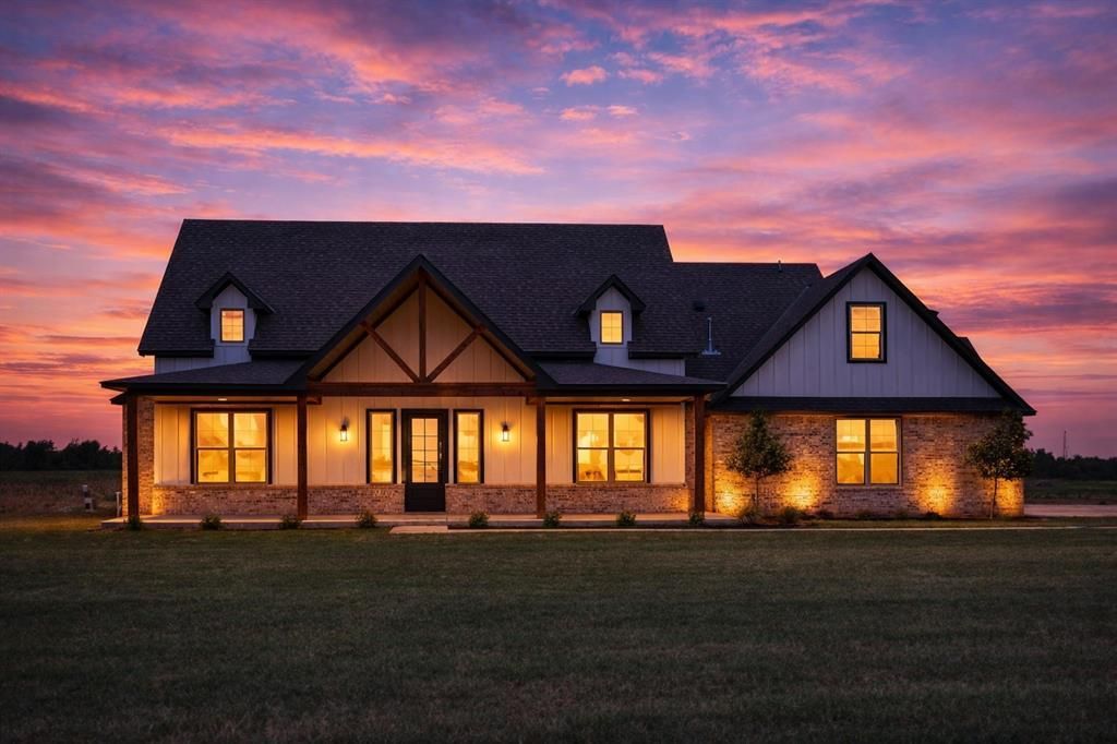 Completed in 2022 by Gary & Justin Owens Construction, this modern-farmhouse sits on approximately 5.2 acres (MOL) in Fontaine Lakes and blends country breathing room with refined, single-level living. The 2,801 SF (MOL) layout centers on an open living/dining area with a gas-log fireplace and easy flow to a deep covered patio-great for everyday lounging or weekend gatherings. Brick & frame construction with stone accents, a composition roof (2021), and a slab foundation offer lasting peace of mind. The split plan provides a private primary suite separate from two secondary bedrooms, plus a convenient half bath for guests. A 4-car attached garage has space for trucks, tools, and hobbies, and the long concrete drive adds ample guest parking. Enjoy sunrise coffee on the east-facing covered porch and wide-open sunset views out back. Central gas heat and electric cooling. Yukon Schools (Independence ES/Yukon MS/Yukon HS). Seller will consider owner financing with 10% to 20% down-ask for details.