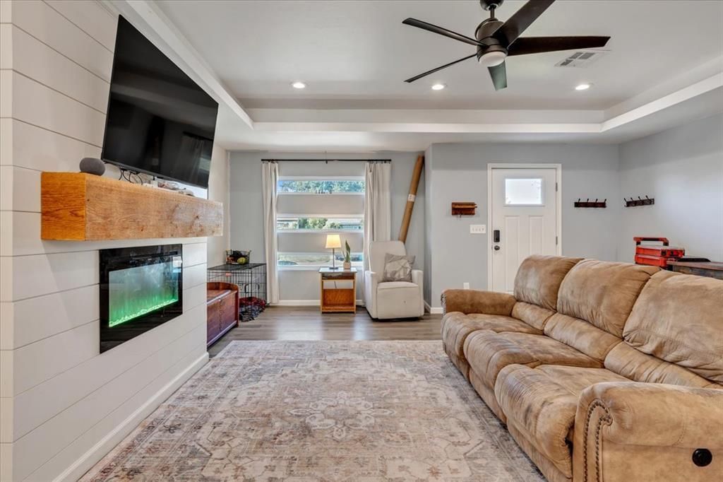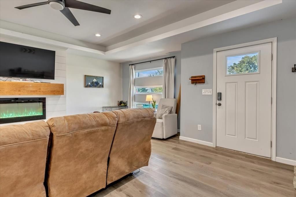 This 3 bedroom, 2 bedroom, home with an open concept can't wait to meet its new owner. Beautifully maintained over the years, the interior includes quartz countertops, brand new laminate floors, and an electric fireplace that adds warmth and style. The kitchen boasts an island with seating and ample storage, perfect for any gathering. The primary suite provides comfort and privacy, complemented with an interior laundry room for convenience. Enjoy the large covered patio and spacious backyard, perfect for relaxing, unwinding, or entertaining. This home is move-in ready and perfect for anyone. Schedule your showing today!