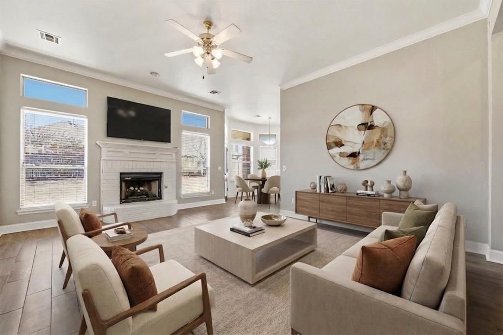 Welcome home to this beautifully well-maintained traditional 4-bedroom, 2-bath residence offering comfort, functionality, and thoughtful design throughout. Step inside to an inviting open-concept living area filled with abundant natural light from large windows that create a bright and airy atmosphere. The spacious living room features a cozy fireplace - perfect for gathering with family and friends. The layout flows seamlessly into the dining and kitchen areas, making everyday living and entertaining effortless. The private primary suite is thoughtfully situated on its own side of the home, providing a quiet retreat complete with ample space and comfort. Three additional bedrooms offer flexibility for family, guests, or a home office. This home is packed with valuable extras, including:In-floor storm shelter for added peace of mind. Bonus room in the 3-car garage - ideal for a hobby space, workout area, or additional storage. Enjoy outdoor living in the fully fenced backyard with a covered patio, perfect for relaxing evenings or weekend gatherings. Conveniently located with easy access to the highway and turnpike, and just minutes from shopping and dining, this home combines tranquility with accessibility. Move-in ready and designed for comfortable living. This one checks all the boxes!
