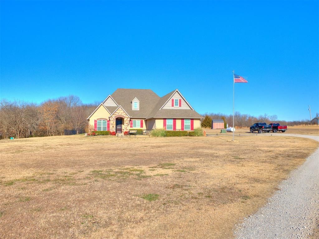 Welcome to this private single-family home situated on 10 acres, offering space, comfort, and versatility. The 3-bedroom, 2-bathroom residence features a functional layout with generous living areas and a formal dining room that can easily serve as a home office to suit your lifestyle needs.The kitchen and living spaces provide a welcoming atmosphere for everyday living and entertaining. The primary bedroom offers a private retreat, while two additional bedrooms are well-sized for family, guests, or flex use. The three-car garage includes a storm shelter, providing added peace of mind and storage.Step outside to enjoy your own in-ground pool, perfect for relaxing or hosting gatherings, all surrounded by expansive acreage that offers privacy and endless possibilities. Whether you're seeking room to roam, garden, or simply enjoy the peaceful setting, this property delivers.A rare opportunity to own a spacious home with acreage, combining indoor comfort with exceptional outdoor living.