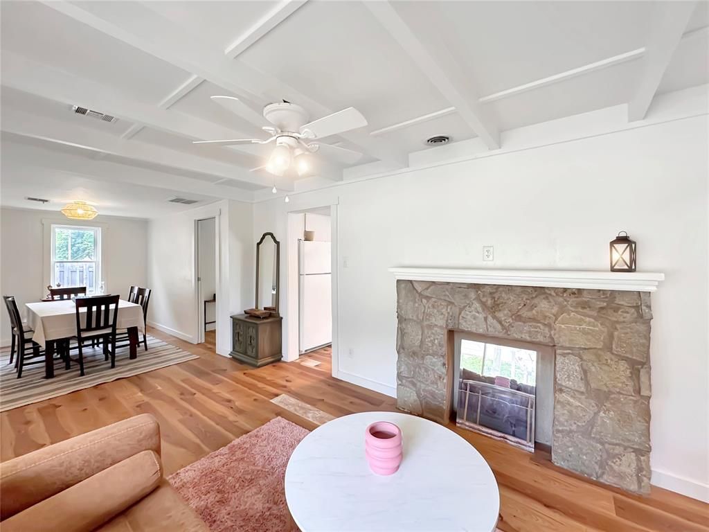 **Mid-Century vibes at an affordable price!** This charming neighborhood will make you feel like you've stepped back in time. The neighborhood has large lots with a rural feel plus the sense of community. A gem like this doesn't come up very often! When you first walk in, you'll be greated by a mock fireplace with rock surround, living room with wood beams, and large windows for lots of natural light. Most of the house has been freshly repainted and has new baseboards and door trim. The bathroom has also been remodeled. The original garage has been converted into a flex space and third bedroom. Flex space could be used as an office, reading nook, or dining room. Cinder block walls help with energy efficiency. It has a large detached garage that is being used as hobby shop. There is a large gate on the side for pull-through access to store your boat or RV. The backyard also has a storm shelter, garden spot, and fully fenced yard for privacy. Home is connected to city water, but also has a well. There are so many possibilities with this charmer!