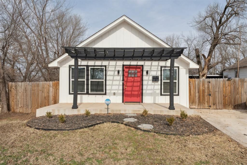 Super cute, super affordable, and perfectly located with convenient access to downtown Oklahoma City, major highways, shopping, and more - this charming newly constructed 3-bedroom, 2-bath home is everything you've been waiting for! Whether you're a young family just getting started, an investor, or someone ready to downsize without sacrificing style, this home checks all the boxes. A charming front porch and inviting red door welcomes you home to a bright, stylish, modern floorplan filled with beautiful wood flooring, big windows, and custom recessed lighting that creates a light, airy feel throughout. You will love the open-concept kitchen, featuring a large island for prep and seating space, complemented by a deep farmhouse sink, stylish floating shelves, matching stainless steel appliances, and crisp white kitchen cabinetry! Retreat to the spacious primary bedroom and ensuite bath featuring custom flooring, a large walk-in closet, a modern vanity and a gorgeous refurbished tile shower! The secondary bedrooms are generously sized with big closets, offering flexibility for kids, guests, or a home office. The guest bathroom truly stands out with eye-catching floating shelves and a massive subway tile shower. A private laundry/utility room adds convenience and extra storage space. Step outside to a large backyard with an open patio and peaceful greenbelt views - the perfect setting for pets, playtime, or relaxing evenings outdoors. This modern contemporary dream delivers the perfect blend of cute, affordable, and move-in ready. Don't miss your chance to make it yours - schedule your private showing today!