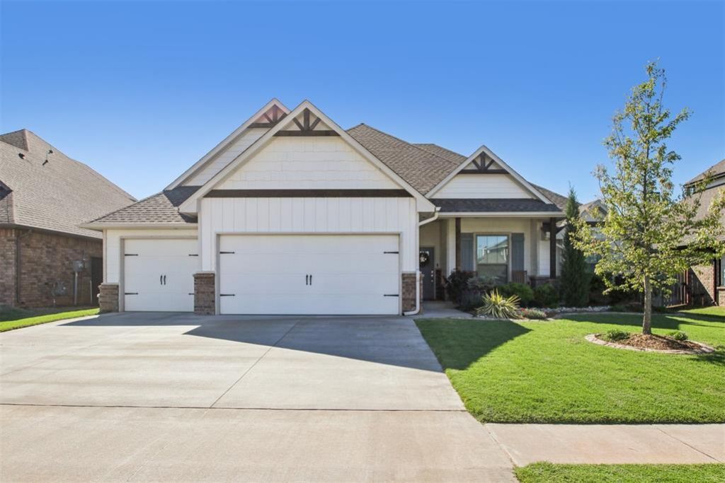 This thoughtfully designed home spans approximately 2,950 sq. ft. and delivers exceptional space and versatility for today's busy lifestyles. Located in the sought-after Chisholm Crossing community, you'll enjoy quick access to local favorites like Freedom Trail Park, Chisholm Trail Park, Yukon Community Center, all within a short distance, with I-40 just minutes away for smooth commuting. The open-concept living area creates a natural flow between the kitchen, dining, and family spaces, perfect for gatherings or relaxing nights by the gas fireplace. Wood-look tile flooring adds warmth and durability, while the kitchen impresses with a center island, gas cooktop, vent hood, pantry, and ceiling-height cabinetry for ample storage. The main-level primary suite delivers a spa-like escape with a whirlpool tub, walk-in shower, dual vanities, and spacious walk-in closet. The main level also includes three secondary bedrooms, one with barn door access ideal as a flex space for a workout room, or hobby area plus a dedicated office/den for ultimate flexibility. Upstairs, a spacious bonus room plus two more bedrooms and a full bath offer flexible options for a second living area, media room, or guest quarters. Smart efficiency upgrades include a Rinnai tankless water heater, whole-home air purification system, fresh air ventilation, R-44 insulation, and a storm shelter for peace of mind. Other thoughtful touches include a mud bench/drop zone, full laundry room with upper cabinetry and folding space, and a 3-car garage. Set on a 0.20-acre lot, the backyard comes fully fenced and ready for entertainment, complete with a covered patio and a wood-burning outdoor fireplace. Enjoy community amenities like two playgrounds, a splash pad, and a fishing pond. Your next home is ready for you, explore the 3D walkthrough, video tour, and detailed floor plan today!