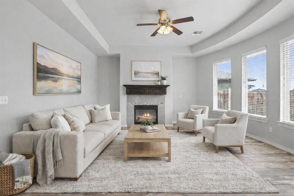You are going to love this one! Look at the huge curved living room windows, the spacious island and granite counters throughout. Tons of kitchen storage space. Only carpet in the bedrooms. Primary bathroom attached to large utility room. Built-in desk, covered patio on the east side of the home for maximum use. Roof only 2 years old!!! Big oversized garage for extra storage/workbench, etc. Great neighborhood and no house directly behind so you have ultimate privacy.