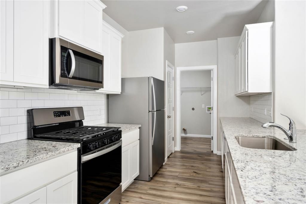 Welcome to the Klein floorplan at Tuscany Lakes-a thoughtfully designed single-story home offering comfort, functionality, and modern finishes throughout. Featuring three bedrooms and two bathrooms, this open-concept layout is ideal for both everyday living and entertaining.The kitchen overlooks the dining and living areas, creating a seamless flow at the heart of the home. It is equipped with granite countertops, white cabinetry, stainless steel appliances, and ample counter space, making it both stylish and practical. Durable wood-look flooring and recessed lighting enhance the main living spaces, adding warmth and modern appeal.The private primary suite is tucked away at the back of the home and features a spacious bedroom, en-suite bathroom, and a large walk-in closet. Additional bedrooms provide flexibility for guests, a home office, or hobbies.Exterior features include a covered front porch, attached two-car garage, and a fully fenced backyard with a covered patio-perfect for outdoor relaxation and entertaining.Located in Tuscany Lakes, residents enjoy a peaceful setting with convenient access to nearby shopping, dining, and major Oklahoma City amenities, along with community features designed for everyday living.This home combines modern upgrades, a functional layout, and exceptional value in one desirable community.