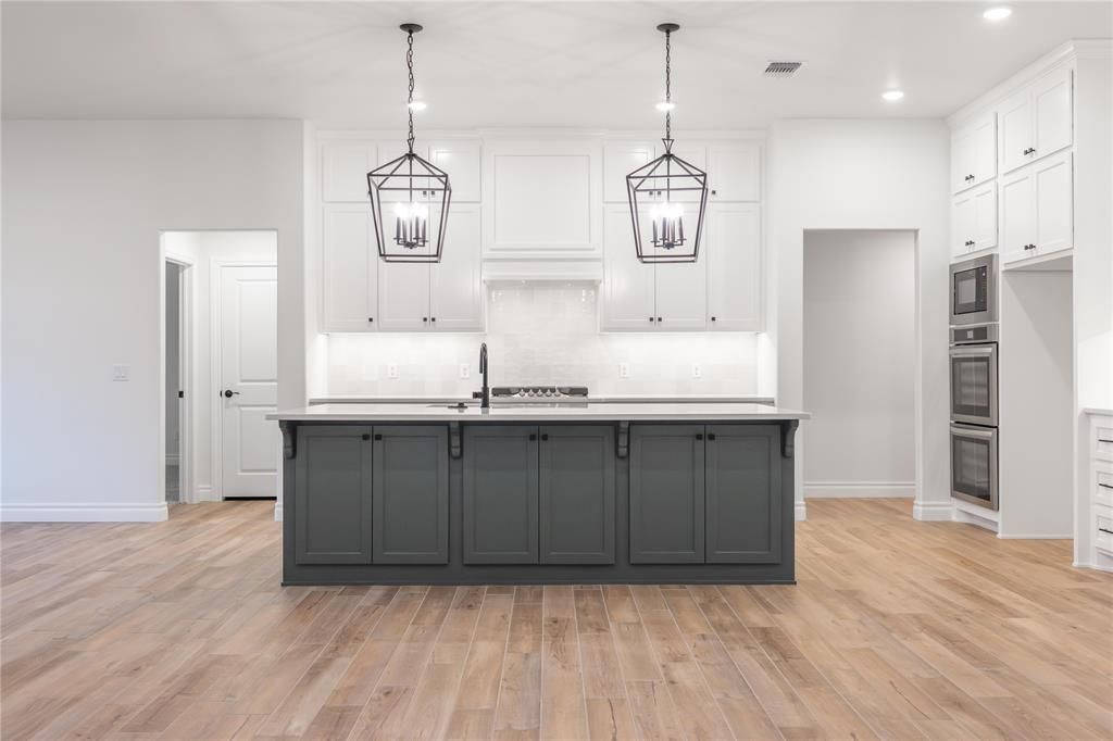 FENCING AND BLINDS INCLUDED! This Rhody floor plan includes 3,590 Sq Ft of total living space, which includes 3,100 Sq Ft of indoor living space and 490 Sq Ft of outdoor living space. There is also a 590 Sq Ft, three-car garage with carriage doors and an in-ground storm shelter installed. This sensational home welcomes TWO primary suites, 2 secondary bedrooms, 3 full bathrooms, a half bath, a mudroom, a utility room, and covered patios. The living room presents a cathedral ceiling, a ceiling fan, wood-look tile flooring, a 3-panel sliding door, Cat6 wiring, rocker switches throughout, and a stacked stone gas fireplace. The outstanding kitchen features stainless steel appliances, including double ovens and a 5-burner cooktop, custom-built cabinets to the ceiling, decorative tile backsplash, exclusive pendant lighting, 3 CM countertop, a walk-in pantry, and a kitchen island equipped with a trash can pullout. Both primary suites support a sloped ceiling detail with a ceiling fan, manicured windows, Cat6 wiring, and carpeted flooring. The primary baths welcome a free-standing tub, a separate sink vanity with framed mirrors, 3 CM countertops, tile flooring, a private water closet, a European walk-in shower, and huge walk-in closets. Secondary bedrooms sit at the front of the home, sharing a Jack-and-Jill bath and include walk-in closets, 10' ceilings with a ceiling fan, windows, and carpeted flooring. Outdoor features include a wood-burning fireplace, a gas line, and a TV hookup. Other amenities include a tankless water heater, a whole home air filtration system, and so much more!