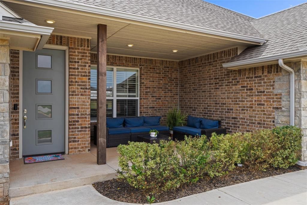 Located in the sought-after Crystal Hill Estates and within the highly desirable Mustang School District, this beautifully designed 2023 home offers the look and feel of new construction without the premium price. Situated on just over half an acre with shop approval, this property delivers the space, flexibility, and lifestyle today's buyers are searching for. Inside, you'll find a thoughtfully designed split floor plan featuring four bedrooms and two and a half bathrooms, with the primary suite privately positioned away from the secondary bedrooms. The main living areas are anchored by durable wood-look ceramic tile, while the kitchen serves as a true centerpiece with granite countertops, a built-in cooktop, custom vent hood, designer backsplash, and a clean, elevated finish palette throughout. The primary suite offers a true retreat with a five-piece bath that includes dual vanities, a soaking tub, a walk-in shower, and a spacious walk-in closet. Plantation shutters throughout much of the home add both charm and function, elevating the overall feel of the space. Enjoy quiet mornings on the covered front porch and relaxed evenings on the covered back patio overlooking the expansive backyard. Residents of Crystal Hill Estates also enjoy access to neighborhood amenities including a community pool, fitness center, and playground, adding to the overall lifestyle appeal. Don't miss the opportunity to own a nearly new home with modern finishes, a functional layout, and room to grow in one of the area's most desirable communities. Schedule your private showing today!