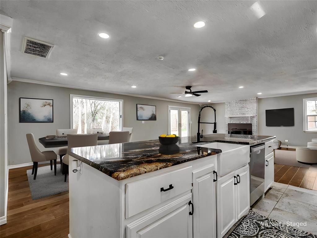 Nestled on 2 peaceful acres, just a short walk to Lake Thunderbird Park, this beautifully updated home offers the perfect balance of comfort, space, and nature. Wildlife lovers will enjoy frequent visits from deer, turkeys, and other native wildlife, creating a quiet retreat that still keeps you close to recreation and outdoor adventure.Inside, the home features wood and tile flooring throughout, fresh paint, crown molding, and upgraded recessed lighting with zoned dimmer switches, allowing you to customize the ambiance in every space. The spacious kitchen is designed for gathering, featuring a stunning 10-foot center island with bar seating, granite countertops, stainless steel appliances-including the refrigerator-and new cabinetry, with additional cabinets to be installed based on the buyer's preference.The living area is warm and inviting with a wood-burning fireplace equipped with a blower, perfect for cozy evenings. Multiple living areas provide flexibility for entertaining, relaxing, or creating the perfect home office or hobby space.Major updates and features include thermal double-pane windows, new electrical, a new driveway, and a high-efficiency SEER 18 HVAC system for comfort and energy efficiency. The roof was replaced in 2020, and tile showers add a clean, modern finish to the bathrooms.Outdoor living is just as impressive, with three separate patios, charming flower paths, and plenty of open space to enjoy. With room to build a shop, park an RV, or expand your outdoor lifestyle, this property offers the freedom to grow and make it your own.If you've been searching for space to breathe, room to grow, and a peaceful setting near the water, this property delivers.